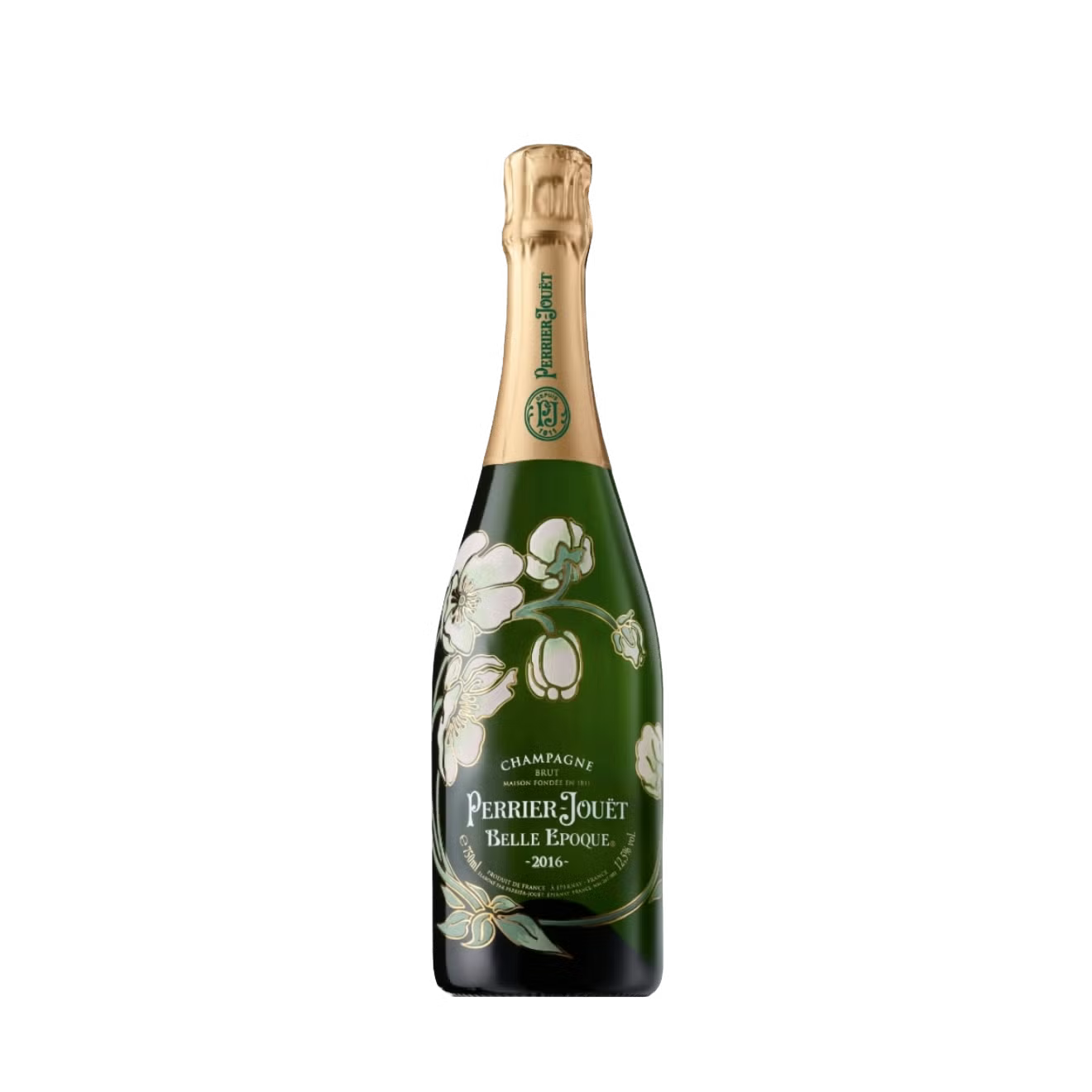 Perrier Jouet Champagne Brut Belle Epoque 2016 dazzles with elegant floral aromas, delicate citrus, and fresh white fruit, balanced by creamy mousse and a crisp, refined finish.