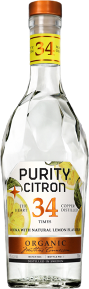 Purity Citron Vodka is a handcrafted organic vodka infused with natural citrus essence for a vibrant and refreshing flavor. Distilled 34 times from Swedish winter wheat and malted barley, Purity Citron Vodka boasts exceptional purity and character. Bursting with notes of lemon zest, lime, and a hint of grapefruit, Purity Citron Vodka delivers a crisp, clean finish that’s perfect for citrus-forward cocktails or simply enjoyed on the rocks.