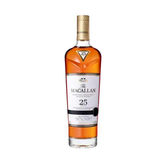 Indulge in the pinnacle of Speyside craftsmanship with The Macallan 25 Year Old Single Malt Scotch Whisky 750 ML, a stately expression aged exclusively in hand-selected sherry-seasoned European oak casks. The Macallan 25 Year Old Single Malt Scotch Whisky 750 ML offers an intensely rich and full-flavored profile with vibrant layers of citrus, dried fruits, and subtle wood smoke. From its deep mahogany hue to its luxurious taste, The Macallan 25 Year Old Single Malt Scotch Whisky 750 ML embodies the legacy of oak mastery and time-honored tradition.