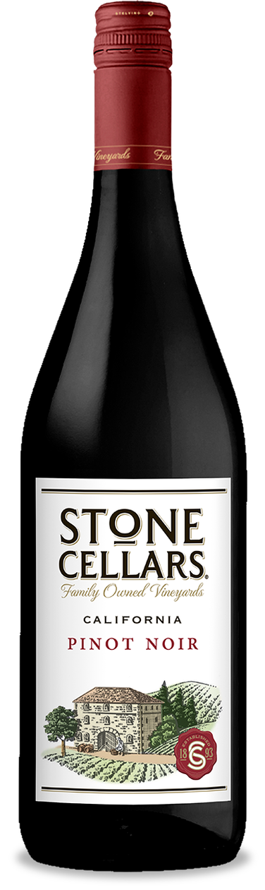 The Stone Cellars Pinot Noir opens with fruit forward aromas like cherry and black currant, intermingling with leather smoky flavors ultimately leading to a long, smooth finish. Producer Information Stone Cellars, founded in 1893, crafts a portfolio of smooth, classically structured varietal wines that reflect the tradition of quality set forth 125 years ago. In the decades since, Stone Cellars has been at the forefront of viticulture and winemaking innovation to ensure consistently high quality across all product lines, and these wines are no exception. At Stone Cellars, our goal is to achieve the optimal level of flavor and balance in our wines – this starts in the vineyards! Our family owned vineyards are located throughout California, in regions that offer ideal grape growing conditions of particular varietals, delivering on each wine’s commitment to true varietal expression. We believe in honoring and practicing traditional winemaking techniques to maximize flavor from the grapes by extracting the utmost depth in color for reds, and preserving the brightest fruit for our whites. Our wines are food friendly, with each varietal back label clearly identifying the wine style that is right for you, from Sweet to Medium-Sweet, and Medium-Dry to Dry. Our grapes are grown from our family vineyards, picked at optimal brix, crafted into great, everyday affordable wines to be enjoyed with food, and shared with family and friends. From our vineyards, to your house, enjoy!