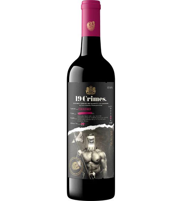 19 Crimes Severed Red 2023 750 ML is a bold and smooth red wine that captures the rebellious spirit behind the 19 Crimes legacy, delivering rich dark fruit flavors with a modern approachable style. Crafted in Australia, 19 Crimes Severed Red 2023 750 ML opens with intense aromas of ripe blackberry, dark cherry, and subtle mocha, followed by a full bodied palate layered with plum, vanilla, and gentle toasted oak. The balanced structure and soft tannins make 19 Crimes Severed Red 2023 750 ML ideal for pairing with grilled meats, barbecue dishes, hearty pasta, and aged cheeses. This vintage showcases depth and character while remaining smooth enough for casual gatherings and special occasions alike. With its striking label and consistent quality, 19 Crimes Severed Red 2023 750 ML stands out as a versatile red wine choice for collectors and everyday wine lovers seeking bold flavor and a memorable finish.