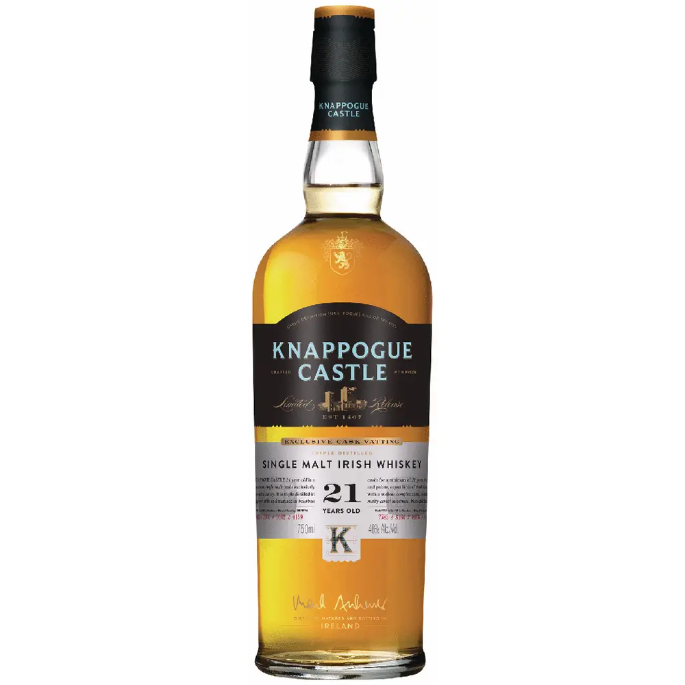 Knappogue Castle Single Malt 21 Year Whiskey 750 ML is a rare and ultra-premium Irish whiskey crafted with exceptional aging and refinement, making Knappogue Castle Single Malt 21 Year Whiskey 750 ML a top choice for collectors and connoisseurs seeking elegance and depth. This Knappogue Castle Single Malt 21 Year Whiskey 750 ML is triple distilled and matured for over two decades in carefully selected oak casks, delivering a smooth and luxurious character that defines Knappogue Castle Single Malt 21 Year Whiskey 750 ML as one of the finest aged Irish whiskeys available. With its rich heritage and limited production, Knappogue Castle Single Malt 21 Year Whiskey 750 ML offers a sophisticated drinking experience with layers of complexity, making Knappogue Castle Single Malt 21 Year Whiskey 750 ML perfect for special occasions or premium gifting. Every sip of Knappogue Castle Single Malt 21 Year Whiskey 750 ML reveals refined craftsmanship, balanced oak influence, and a long elegant finish that truly highlights the excellence of Knappogue Castle Single Malt 21 Year Whiskey 750 ML.
